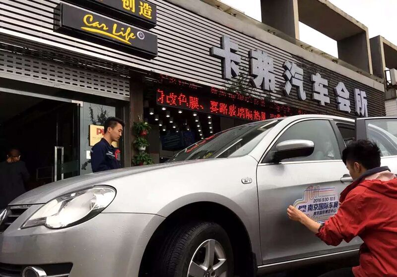 6月4日, 2016(第十五届)南京国际车展的金牌预热活动——全城车贴精彩上演,前期通过车展官微报名“抢”车贴的车友们,从上午8点开始,陆续贴上了心仪已久的南京国际车展车贴。现场车友对这次车贴活动赞不绝口,纷纷拿起手机拍照将喜悦分享给朋友们。