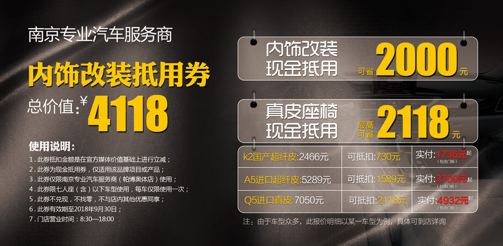 真皮座椅养护礼券