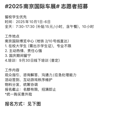 摇人!2025南京国际车展志愿者招募